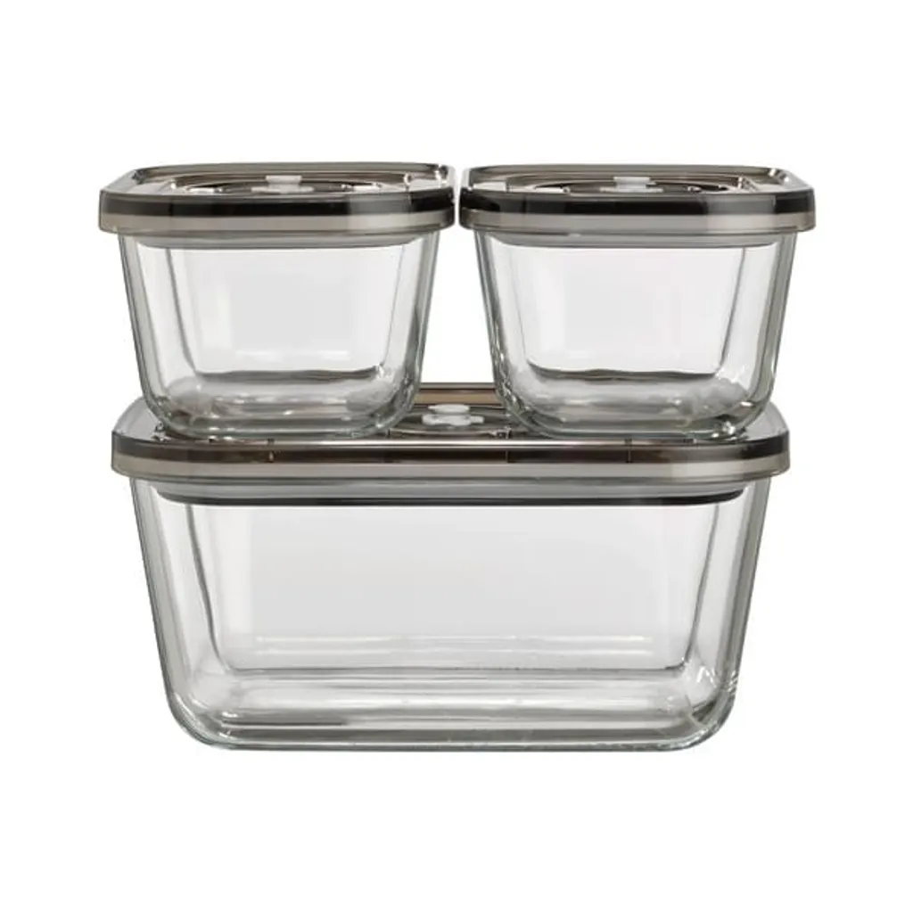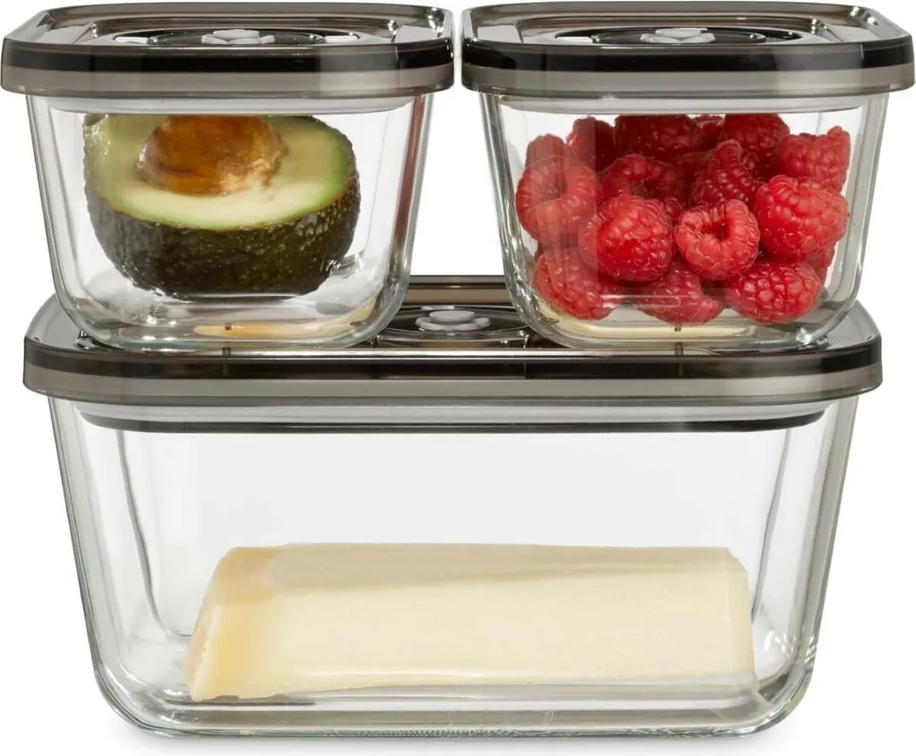- Stapelbares Vakuumbehälter-Set aus Glas mit Kunststoff-Deckel