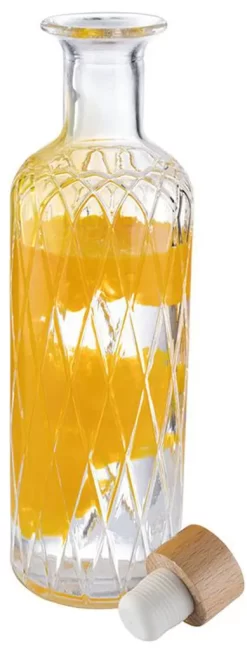 APS Glaskaraffe -LINES- /// Ø 8 Cm, H: 27 Cm, 0,9 Liter /// Glas, Deckel Aus Kork /// /// 10738