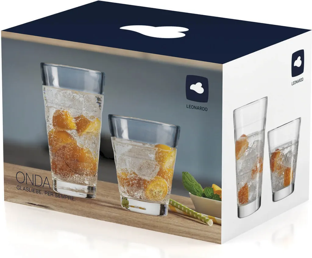 Das Glas ist eine geschmackvolle Bereicherung im Alltag! Mit der ONDA Serie genießen Sie ihre Getränke wie nie zuvor. Durch die konische Form der Gläser werden sie automatisch zum Highlight jeder Wohnung. Das Set kombiniert praktische Longdrinkgläser mit schönen kleinen Whiskygläsern.