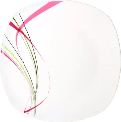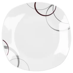 Tafelservice Palazzo 12tlg. – Weiß MitNachbildung-Kreisen In Grau Und Dunkelrot – Für 6 Personen